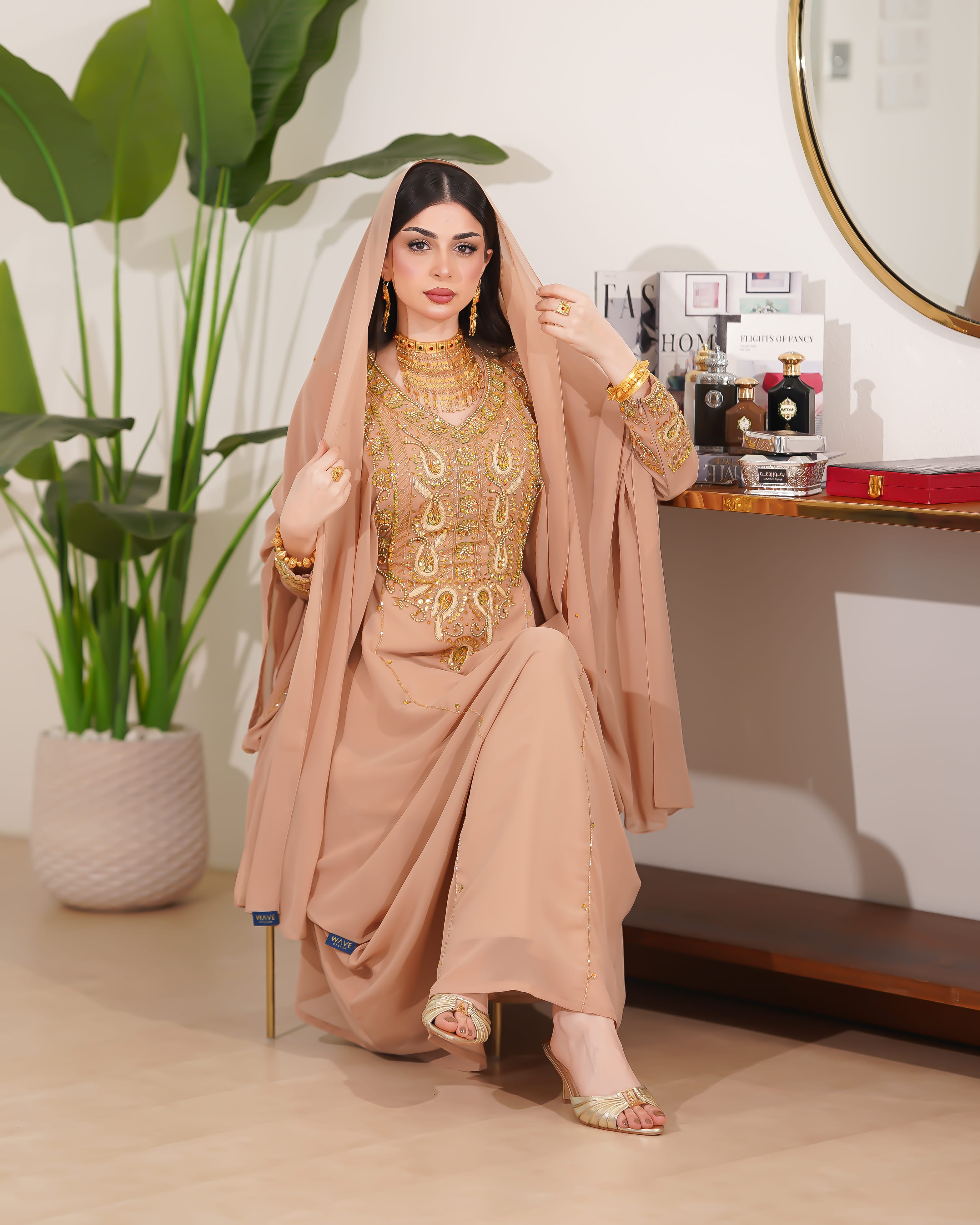 نوع القماش:شيفون شامل الشيلة: نعم ملاحظة: العارضة ترتدي الطول 51 الصدر 28 الكم من نص الرقبة 27